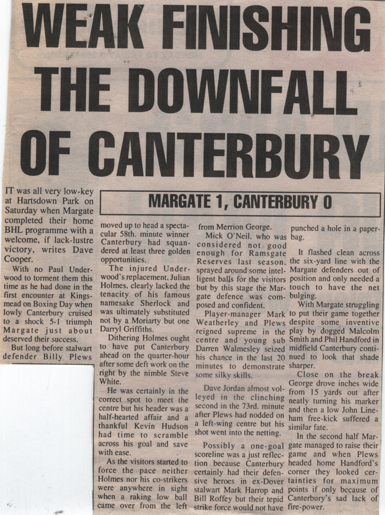 Margate v Canterbury City - Saturday, April 10th, 1993