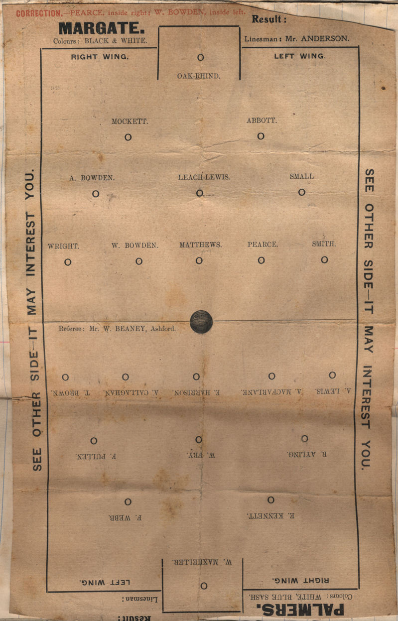 Margate v Dover Palmers - Saturday, October 28th, 1905