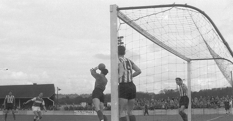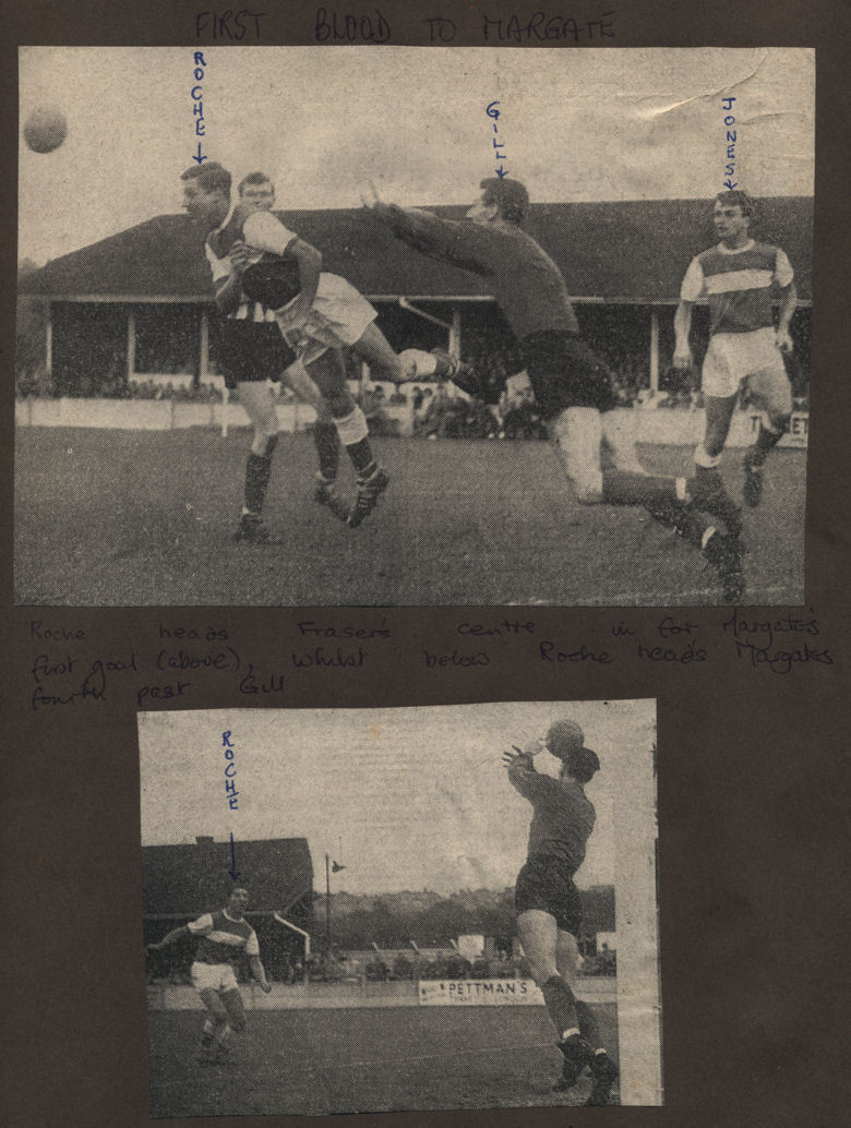 Photo shows John Fraser firing home Margate's second goal after a solo run