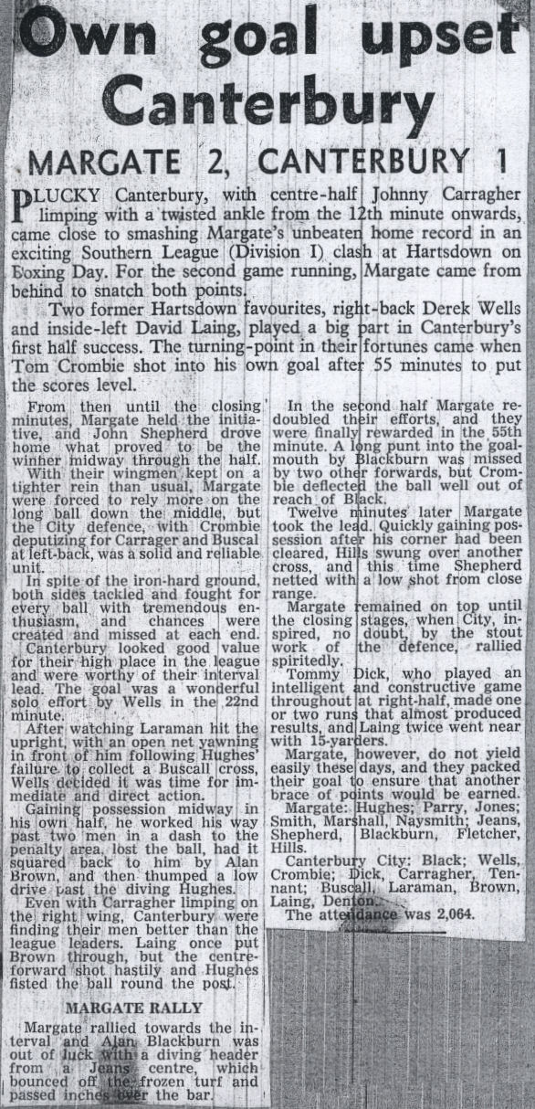 Margate v Canterbury City - Wednesday, December 26th, 1962