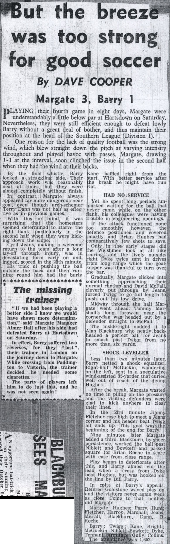 Margate v Barry Town - Saturday, March 23rd, 1963