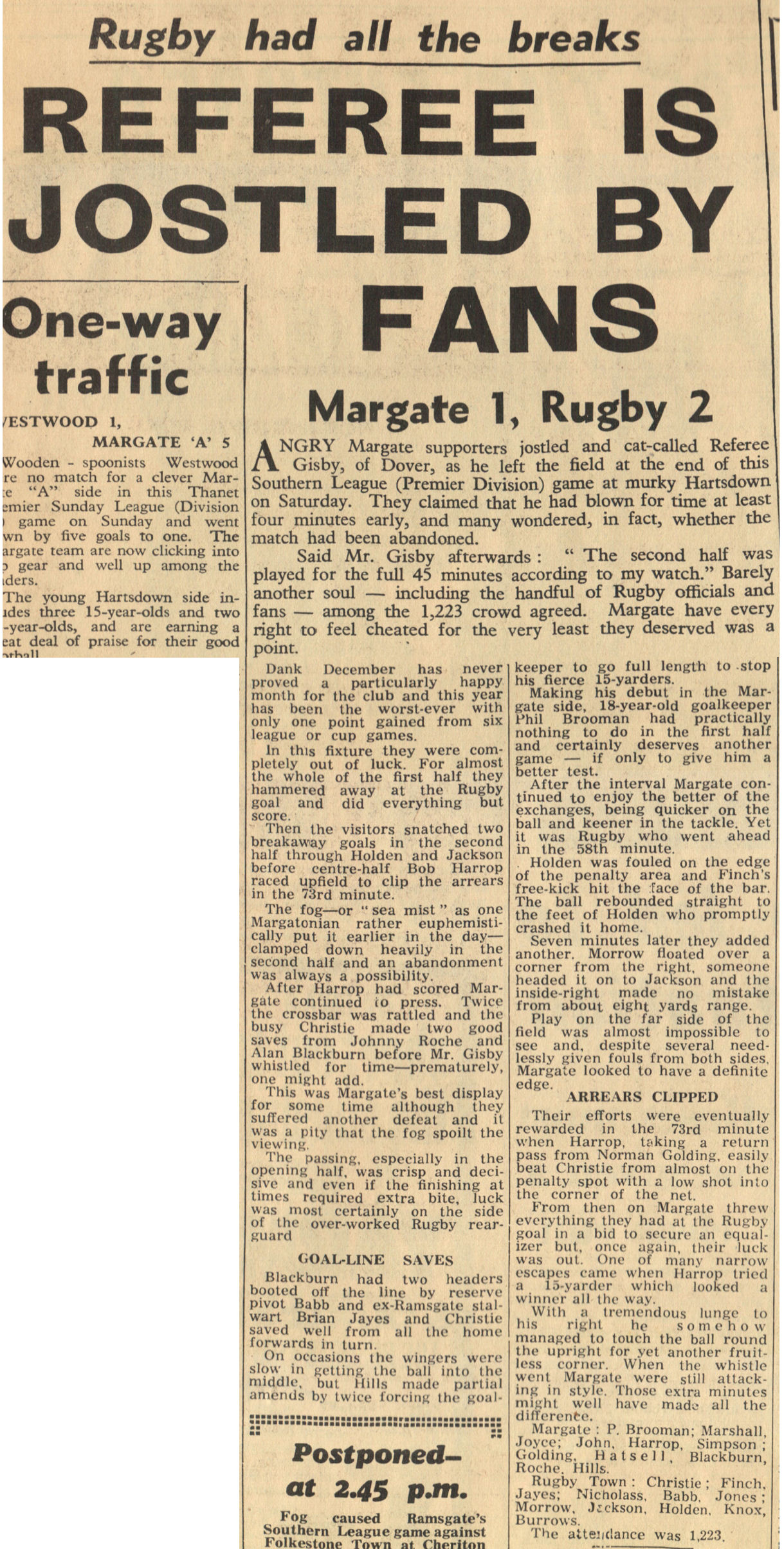Margate v Rugby Town - Saturday, December 28th, 1963