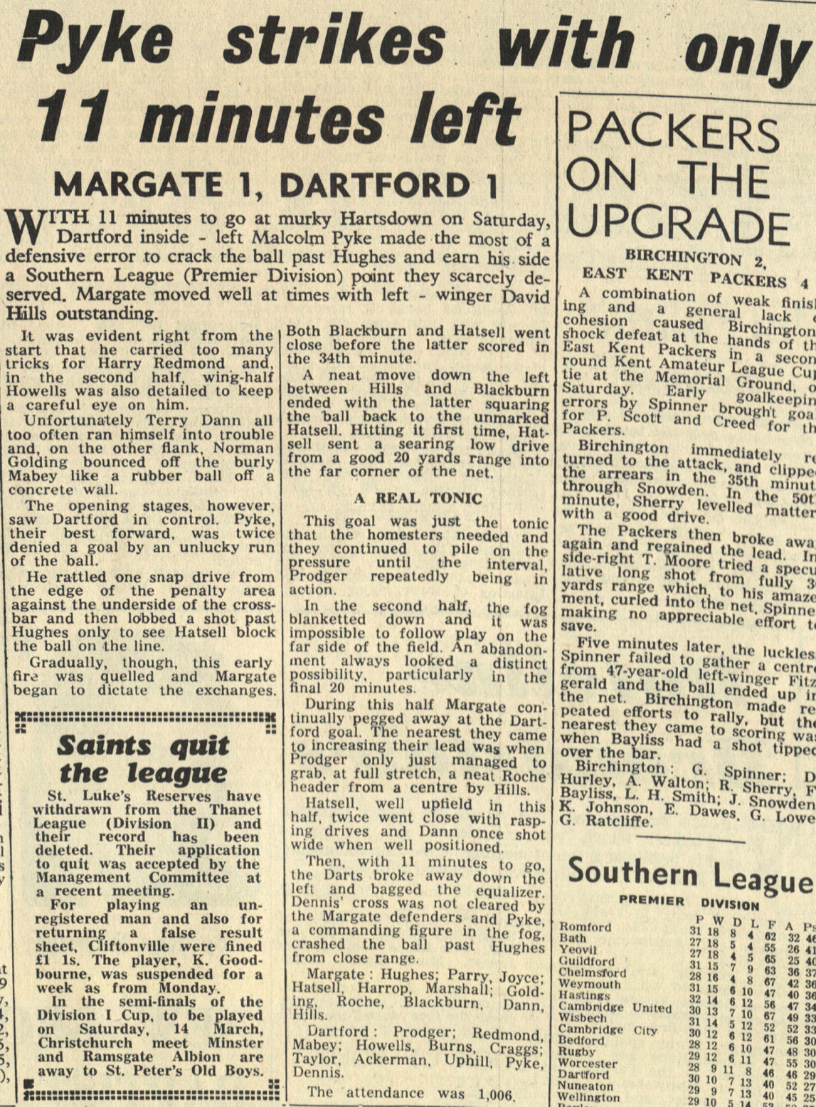 Margate v Dartford - Saturday, February 29th, 1964