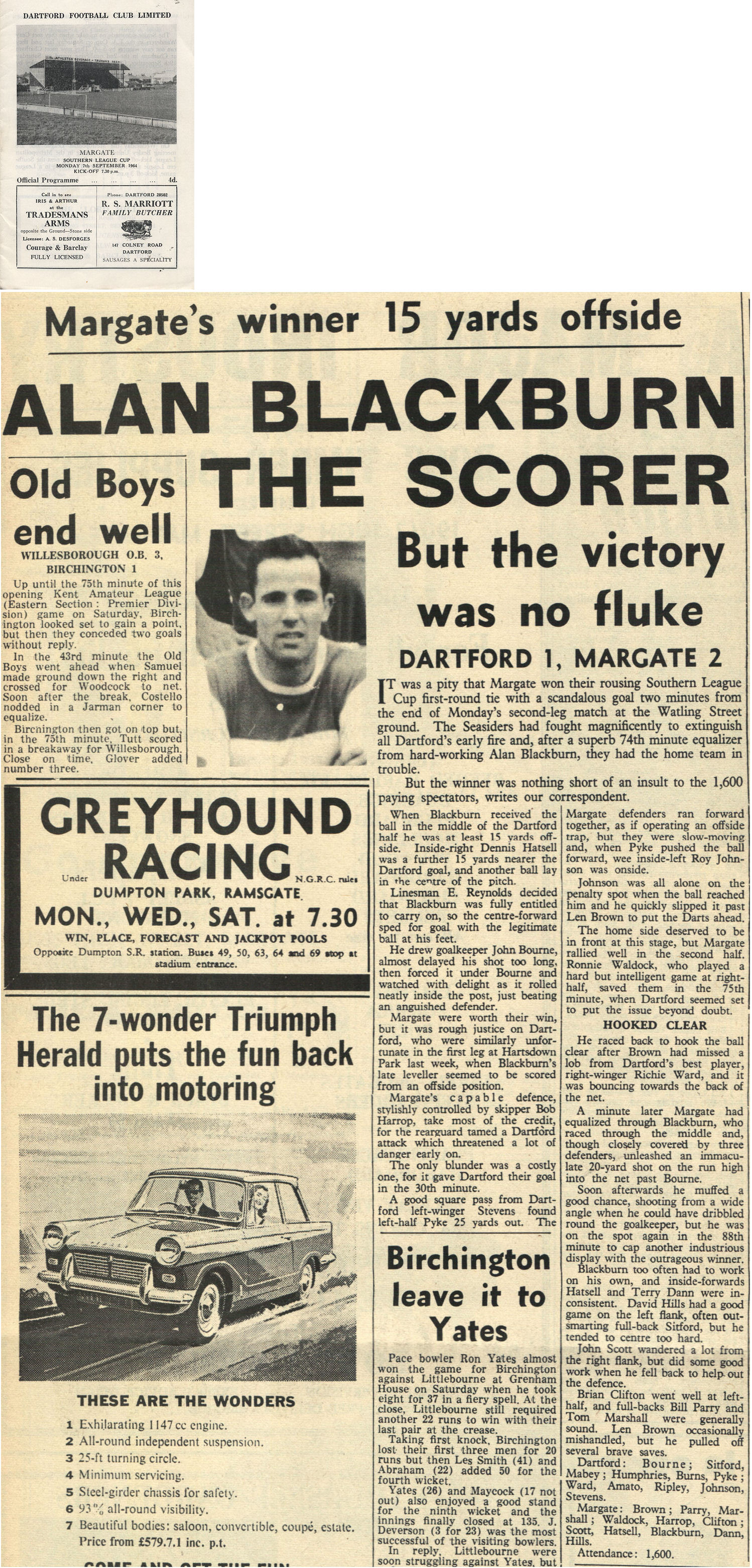 Dartford v Margate - Monday, September 7th, 1964