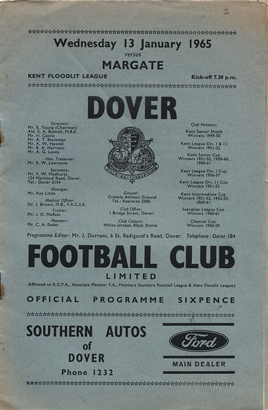 Dover v Margate - Wednesday, January 13th, 1965