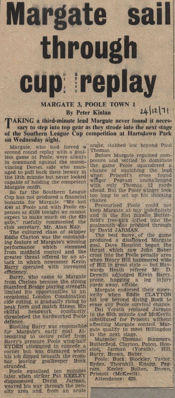 Margate v Poole Town - Wednesday, December 22nd, 1971